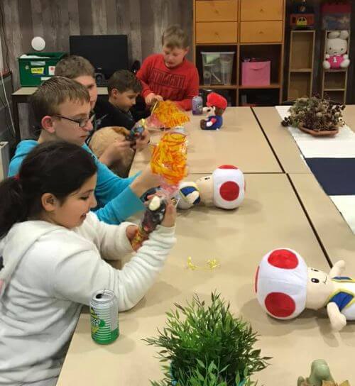 Frietje erbij, ook prik in het blikje. Boven in het donker verstoppertje spelen ?!